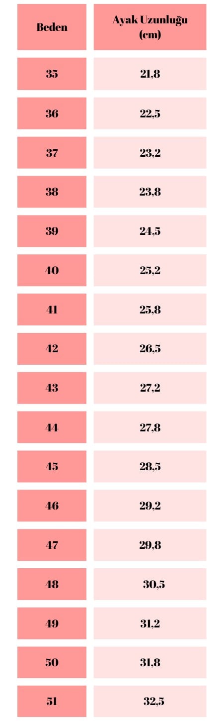 Beden Aralığı: 39 – 47