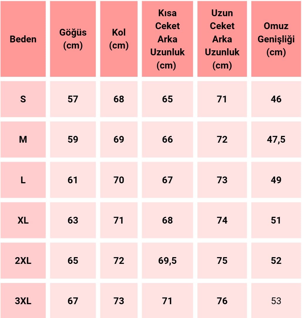 8 dış cep + 3 iç cep